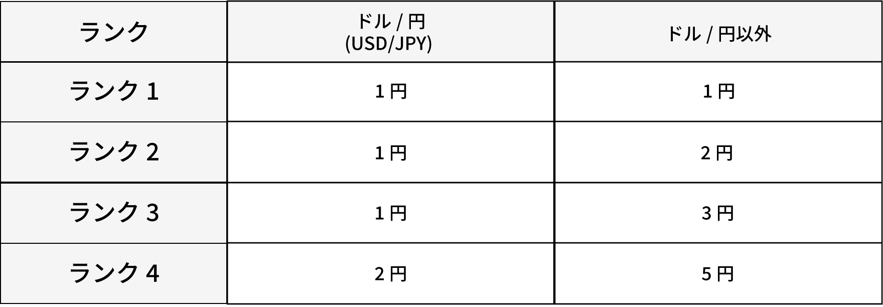 ・キャンペーン期間※における入出金差額ランクに応じて、対象通貨ペア・対象サービス合計取引量で付与金額を算出いたします。