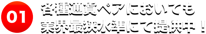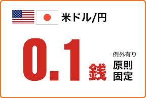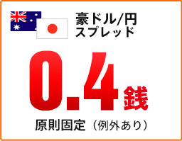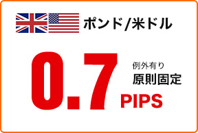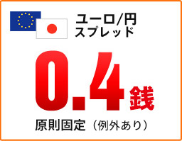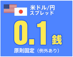 ※日本時間AM8:00~翌AM5:00において原則固定(例外有り)上記スプレッドは固定されたスプレッドではありません。市場の急変時(東日本大震災などの天変地異・各国中央銀行の市場介入・その他外部要因)や市場の流動性が低下している場合(月曜日の午前7時~午前8時頃、夏時間の午前6時前後(冬時間の午前7時前後)、クリスマス時期、年末年始、経済指標の発表前後の時間帯等においては、スプレッドが拡大する場合があります。上記の場合は、原則固定(例外あり)スプレッド適用対象外です。