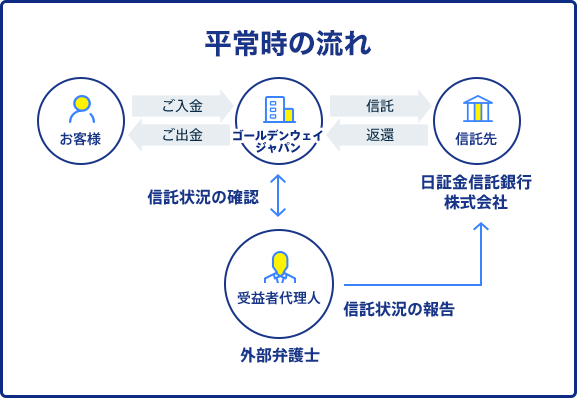 信託保全しております。当社が万が一破綻した場合でも、お客様の資産が